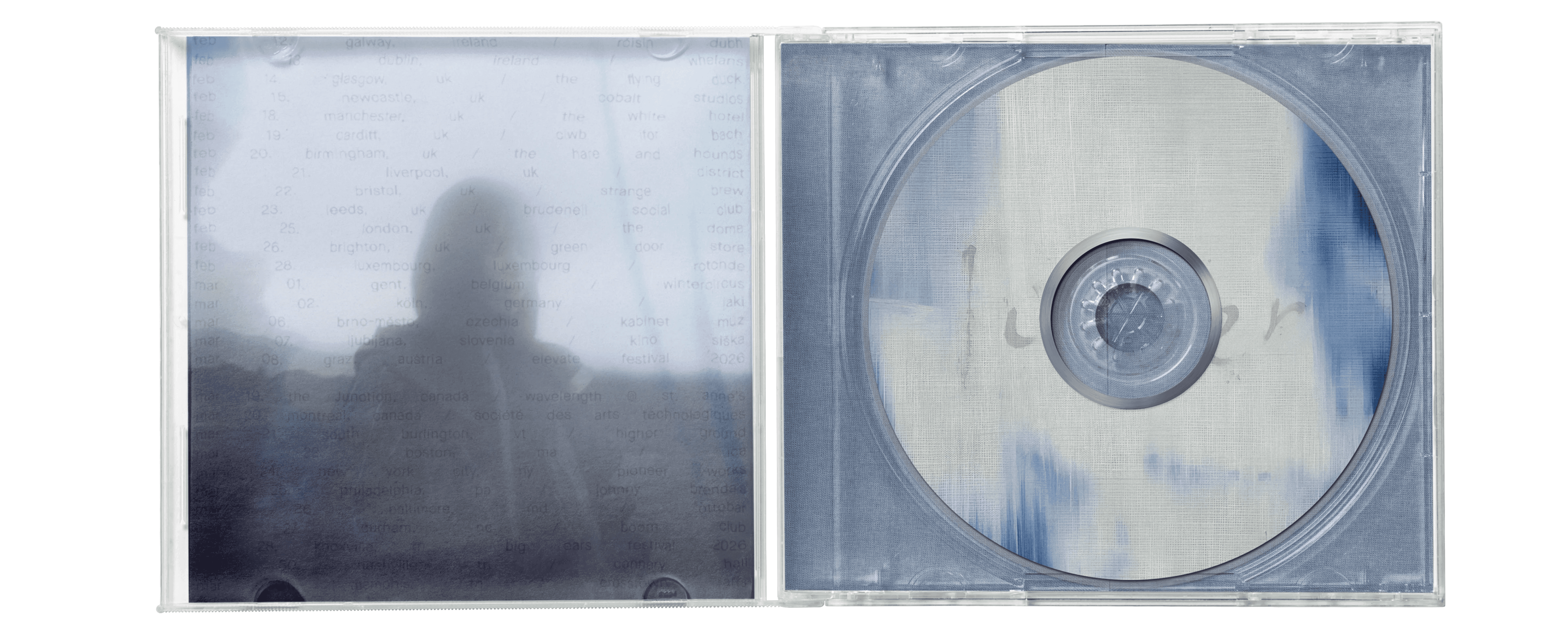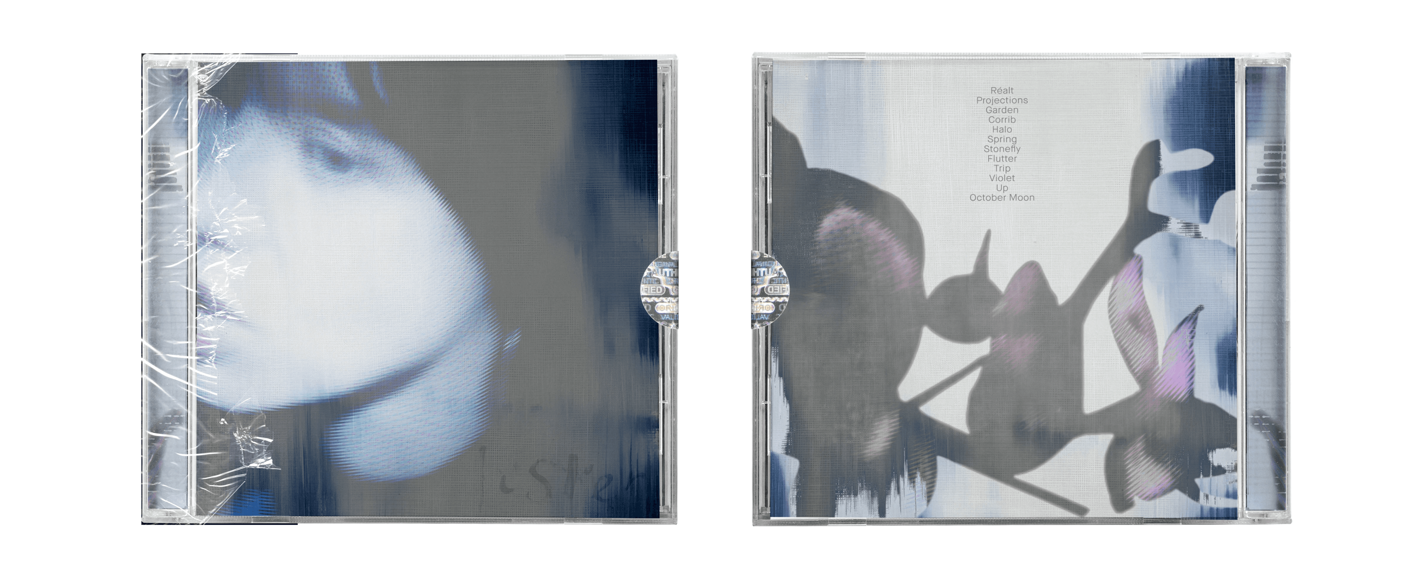This project examines physical media as an extension of sound, treating the CD & vinyl format as an atmospheric object rather than a purely functional one. Soft-focus imagery, translucent layering, and a muted blue palette create a sense of suspension and movement that reflects the tone of the music. The design prioritises materiality and restraint, allowing texture, light, and negative space to shape a quiet and immersive visual experience.